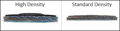 High Density: Between 40-60% more material than standard discs, these high density discs are provide a longer life and softer grind. The thicker design conforms to irregular shapes, which is ideal for working on curved surfaces.